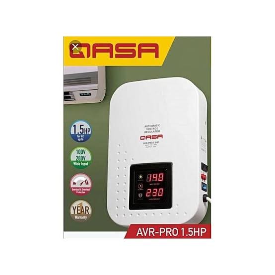 afeguard your appliances with the Qasa AVR‑Pro 1.5HP Automatic Voltage Stabilizer — built for reliability and peace of mind. With a wide voltage input range (100V–280V), LCD digital display, surge protection, and wall-mount design, this stabilizer ensures smooth, uninterrupted power delivery for your air conditioners, TVs, fridges, and electronics.
